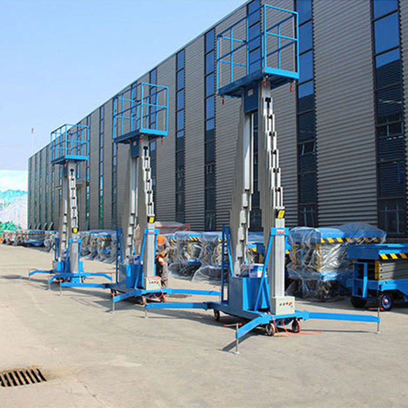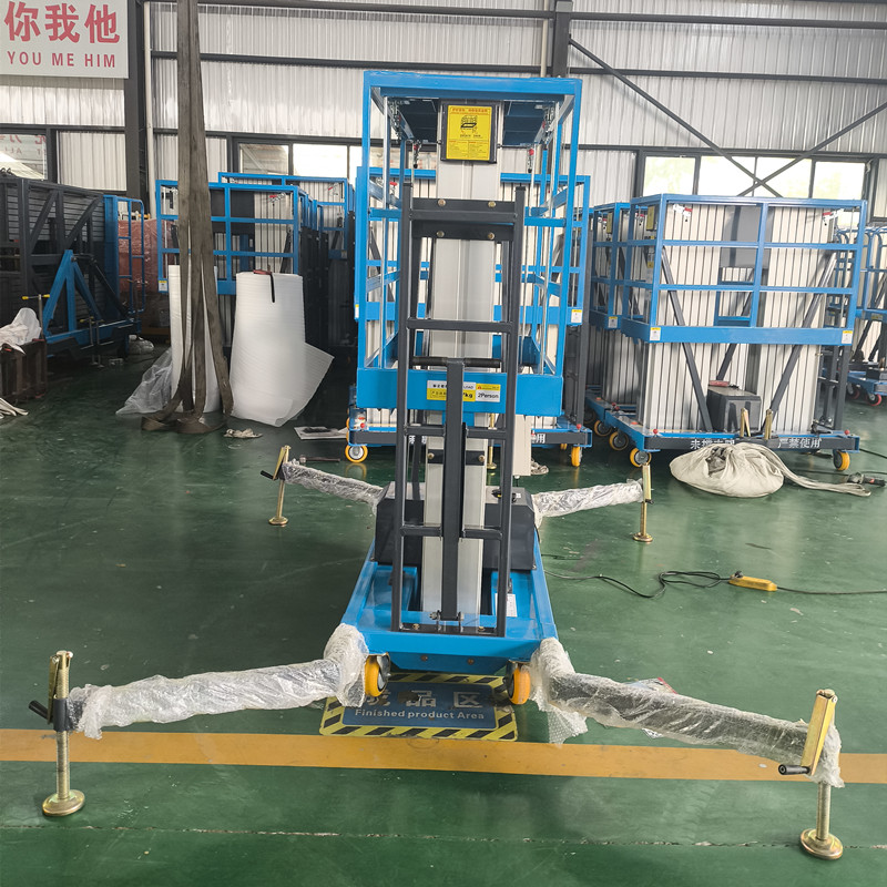 铝合金升降平台采用高强度优质铝合金材料,锰钢钢板加厚底盘和四个支撑腿支撑,安全可靠。设备标配下控和遥控方式升降,方便高空作业人员操作设备。设备体积小重量轻,使用轻便省时高效,非常适合进出狭小空间或电梯轿厢。