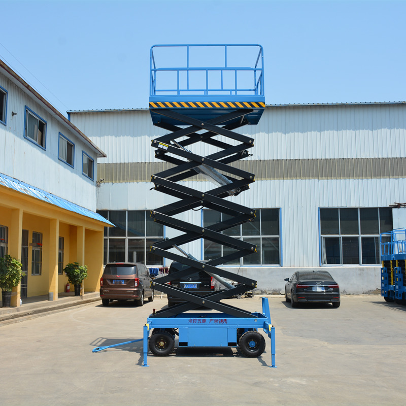 常规剪叉升降平台在使用前要把支撑腿撑开,如需移动需要将平台降下来并收起支撑腿才可以移动,产品的特点是载重大、价格便宜,适合大载重用户或升起后不需要移动的场所。