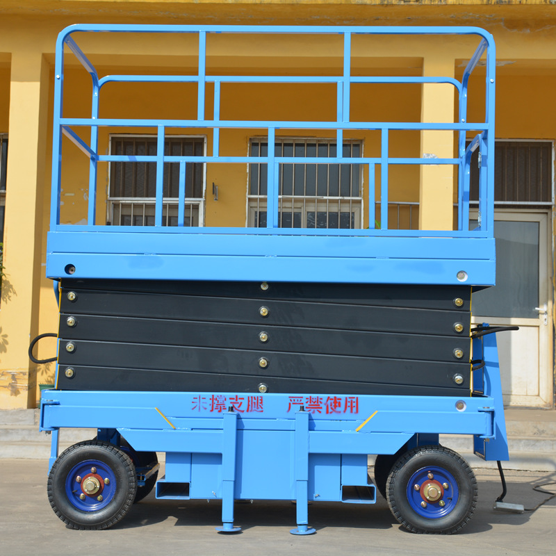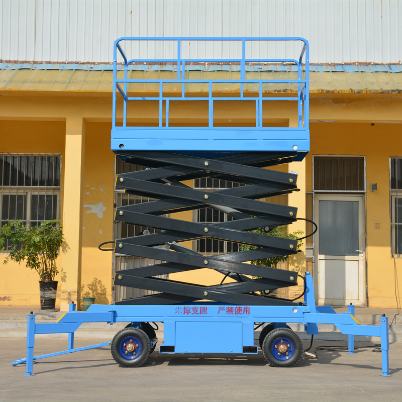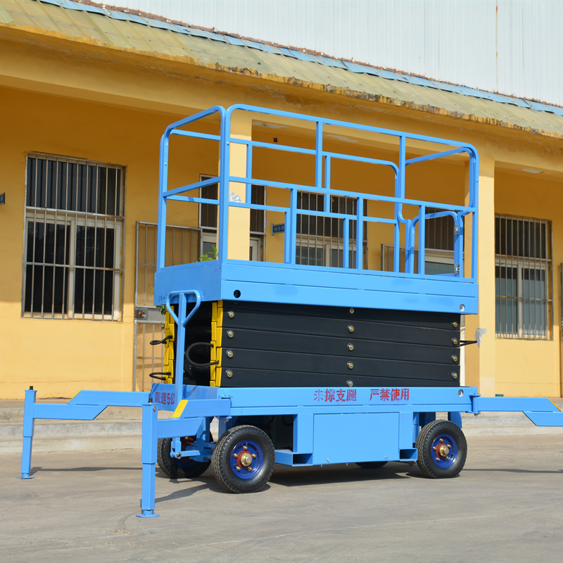 常规剪叉升降平台在使用前要把支撑腿撑开,如需移动需要将平台降下来并收起支撑腿才可以移动,产品的特点是载重大、价格便宜,适合大载重用户或升起后不需要移动的场所。